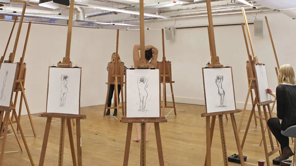12 artistes et autant de façon d'appréhender la nudité et la pose du modèle posté devant leur chevalet. Si, au départ, le gif laisse observer des lignes similaires chez tous les dessinateurs, on s'aperçoit au fil du temps que le modèle, qui bouge au fil des angles de vue, voit sa représentation varier d'un dessin à l'autre.
