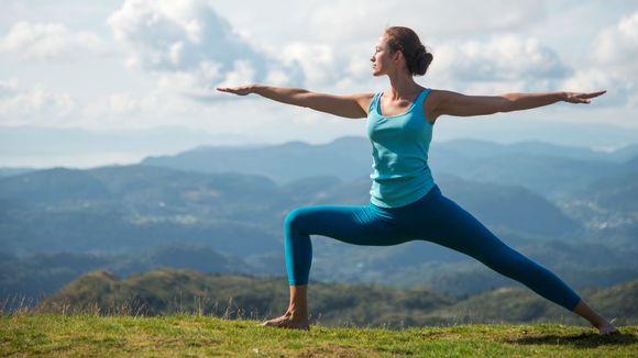 En pratique : Debout, pieds écartés largeur bassin, le regard est porté droit devant soi. Écartez un peu plus vos jambes, d'un mètre environ. Flanchissez votre jambe droite, toujours talon au sol. Votre jambe gauche est tendue, pied perpendiculaire au pied avant. Levez les bras et les épaules, puis mettez-vous de profil. Faites bien attention à ce que vos fesses et votre ventre ne ressortent pas trop. Le bas de votre dos ne doit également pas être courbé. Respirez profondément pendant plusieurs secondes, reprenez la position initiale et changez de jambe.
