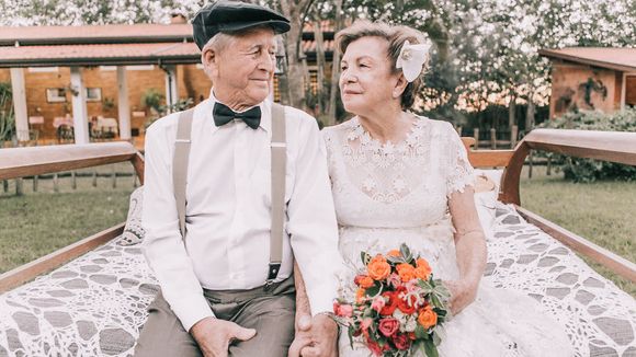 C'est une jolie histoire qui nous vient du site Bored Panda. Un couple brésilien marié en 1957 n'a malheureusement pas pu immortaliser ce grand moment. "Son grand-père s'était chargé de la déco, la tante du gâteau et la marraine avait cousu la robe", peut-on ainsi lire. Mais côté photographies ? Personne. Soixante ans plus tard, les deux tourtereaux (qui ne sont pas nommés) sont toujours très amoureux. Ils ont donné naissance à 9 enfants, sont les grands-parents de 16 petits-enfants et les arrière-grands-parents de 4 arrière-petits-enfants. Des photographes professionnels ont alors eu une idée : leur offrir une séance photo digne d'un mariage idyllique.