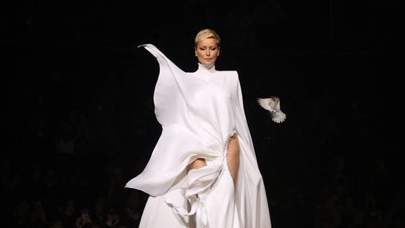 Chargée de clôturer le défilé, l'ancienne top a fait sensation dans une robe blanche immaculée, en mode mariée des temps modernes. Avec ses épaulettes démesurées, sa coupe asymétrique, sa longue cape soyeuse et surtout sa fente qui laissait entrevoir ses jambes (qui mesurent 1,40 m, on le rappelle !), Adriana Karembeu a scotché une partie de l'assistance. Installé à côté de Brigitte Macron, Marc Lavoine n'avait d'yeux que pour sa belle.