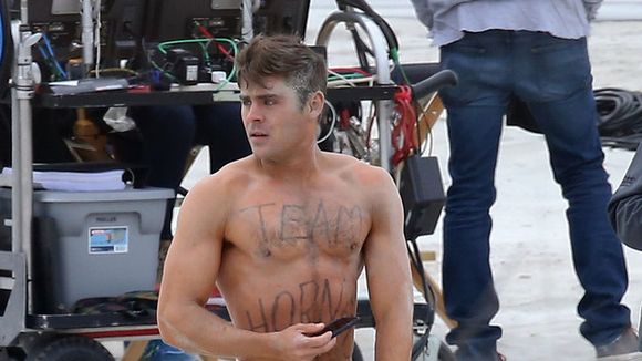 Sur ces photos, Zac Efron est en plein tournage de son prochain film "Dirty GrandPa" dans lequel il joue aux côtés de Robert De Niro. Si l'ex de Michel Rodriguez a de quoi assumer son corps bien sculpté, il n'a pas l'air très à l'aise avec ce qu'il a entre les jambes : une sorte de short orné d'une peluche...
